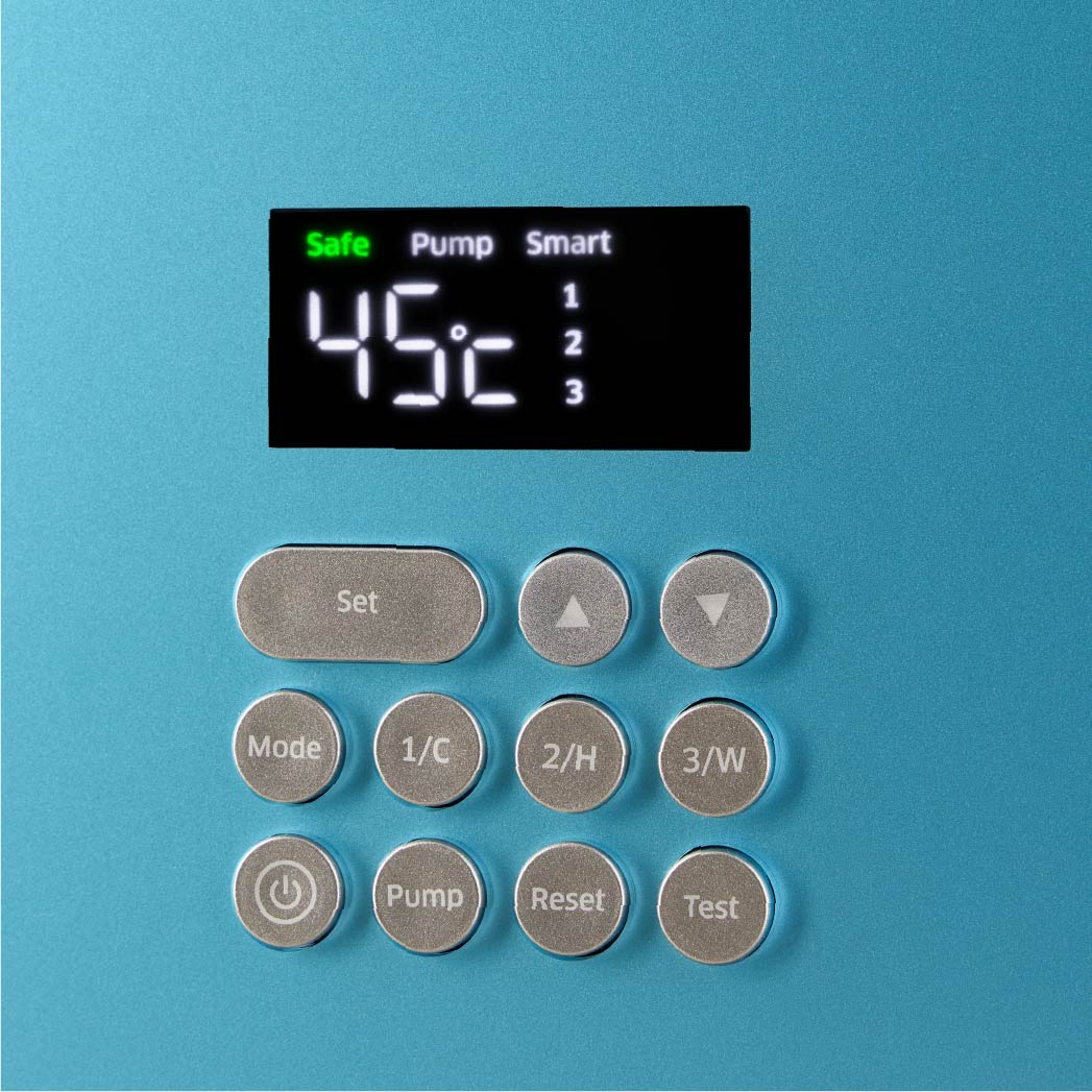 The set shower temperature and mode can be seen at a glance on the digital display.