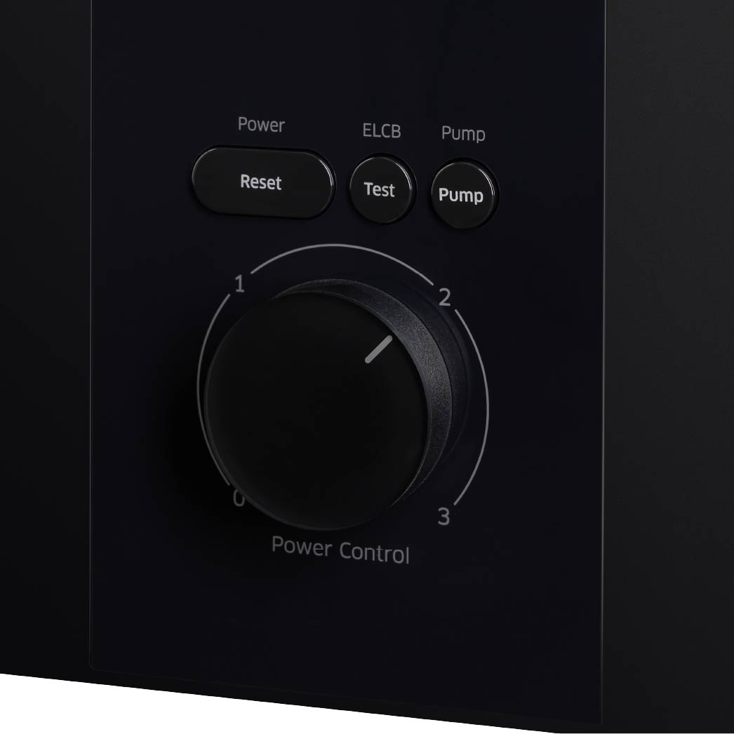 Model type Analog Model Power Rating 3.8kW DC Pump - Voltage 230V/60Hz Exterior ExteriorColor Diamond Black IP25 ● Anti-Bacteria ● Min Flow Rate 1.5L/m Max Flow Rate 6.0L/m Max Pressure 0.6Mpa ColdWater